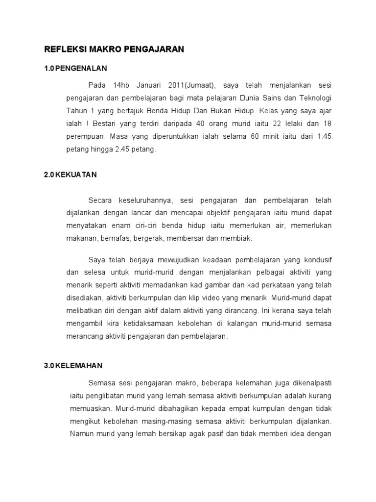 Refleksi Makro Pengajaran 1 0pengenalan