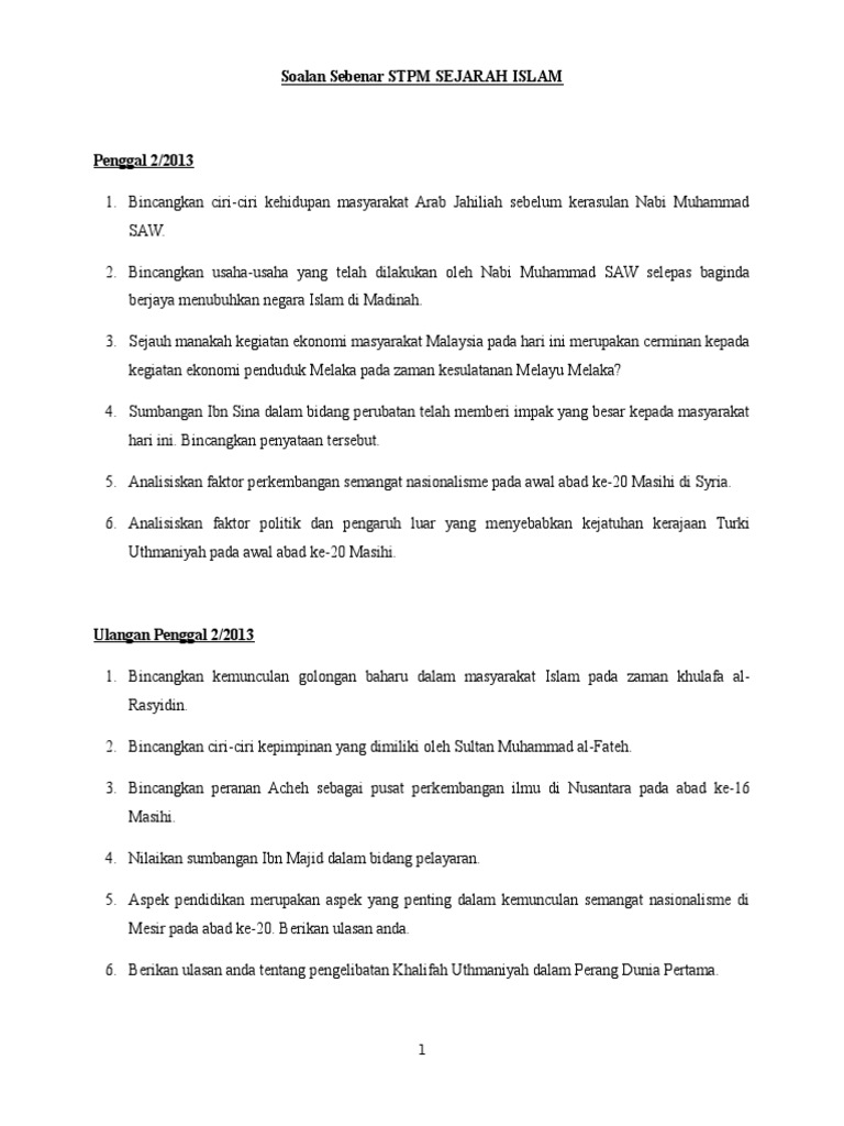 Skema Jawapan Kerajaan Islam Di Madinah Dan Contoh Soalan
