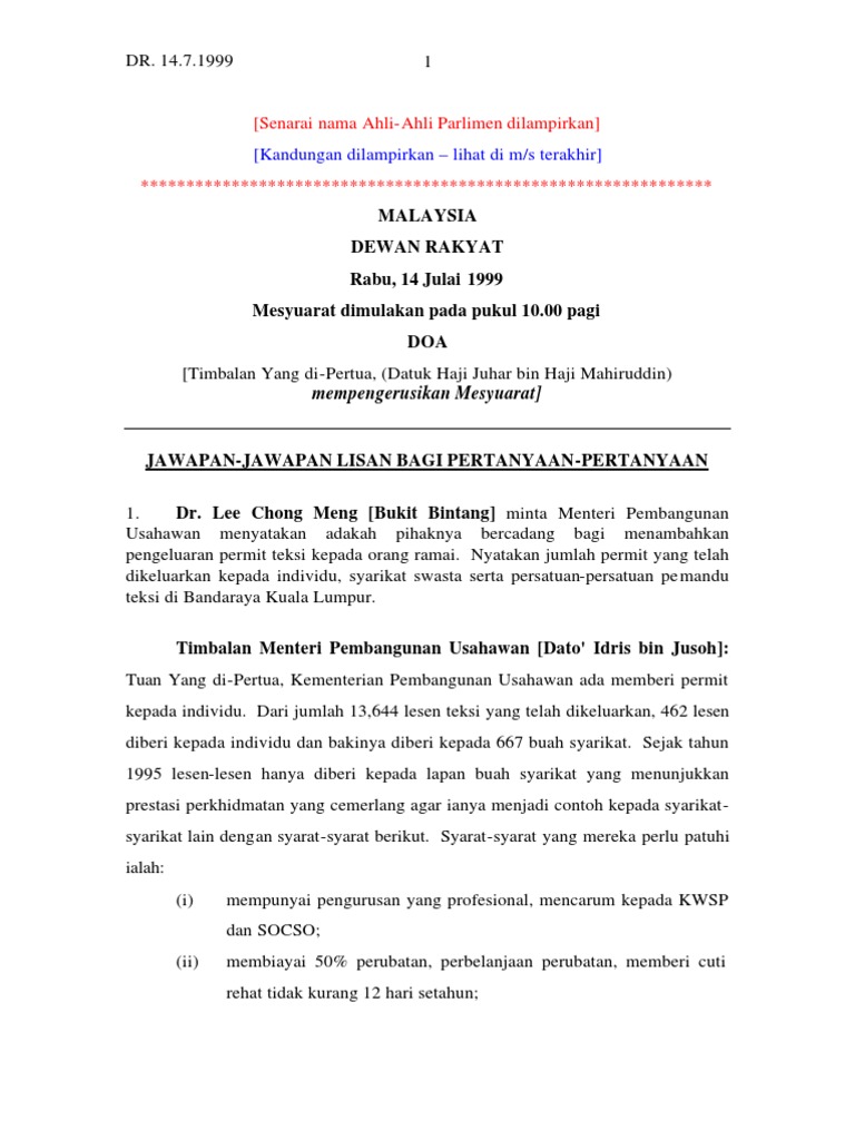 Http Lib Perdana Org My Plf Parliament Hansard 2000 Dewan 20rakyat Dr Mac00 Dr 28 03 2000 Pdf