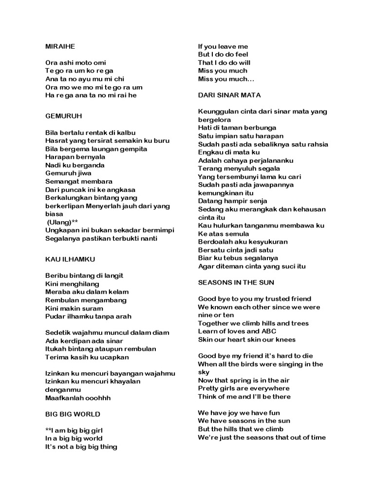 Doc Lirik Lagu Zamilah Zubir Academia Edu