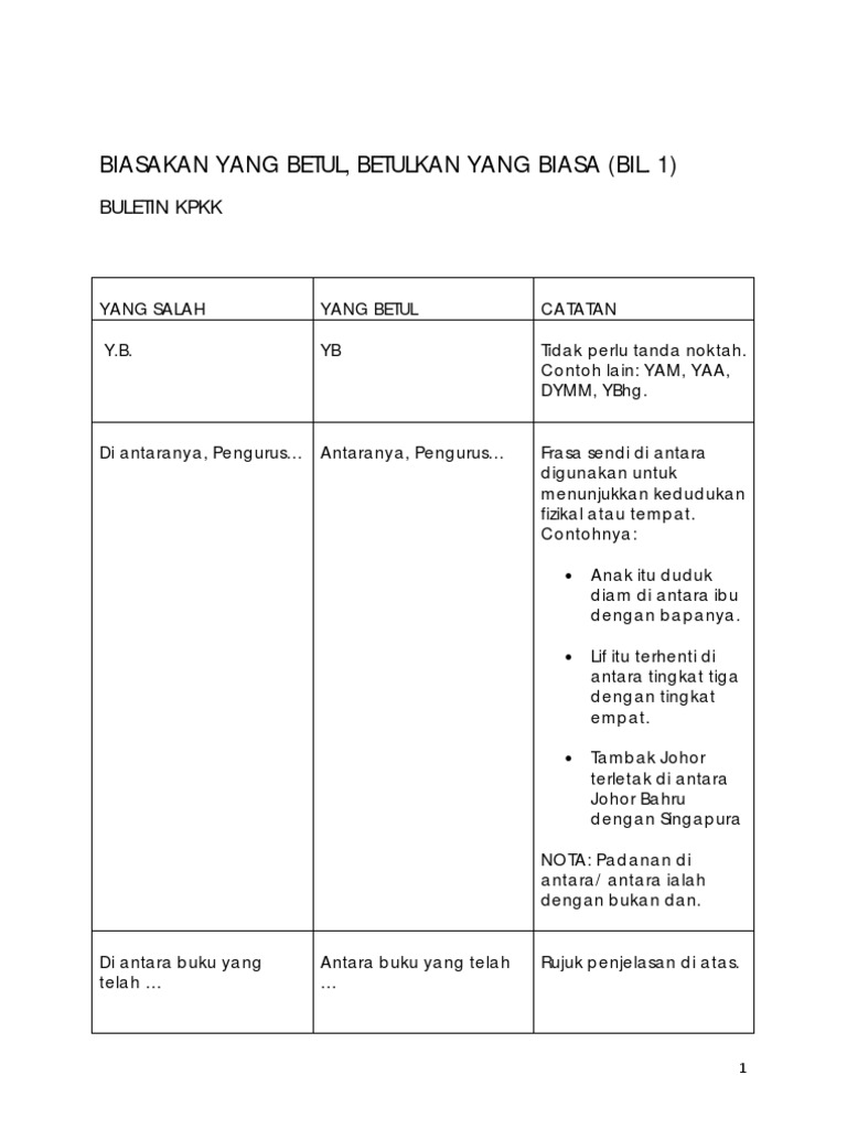 Biasakan Yang Betul Betulkan Yang Biasa Bil 1 Ipptar