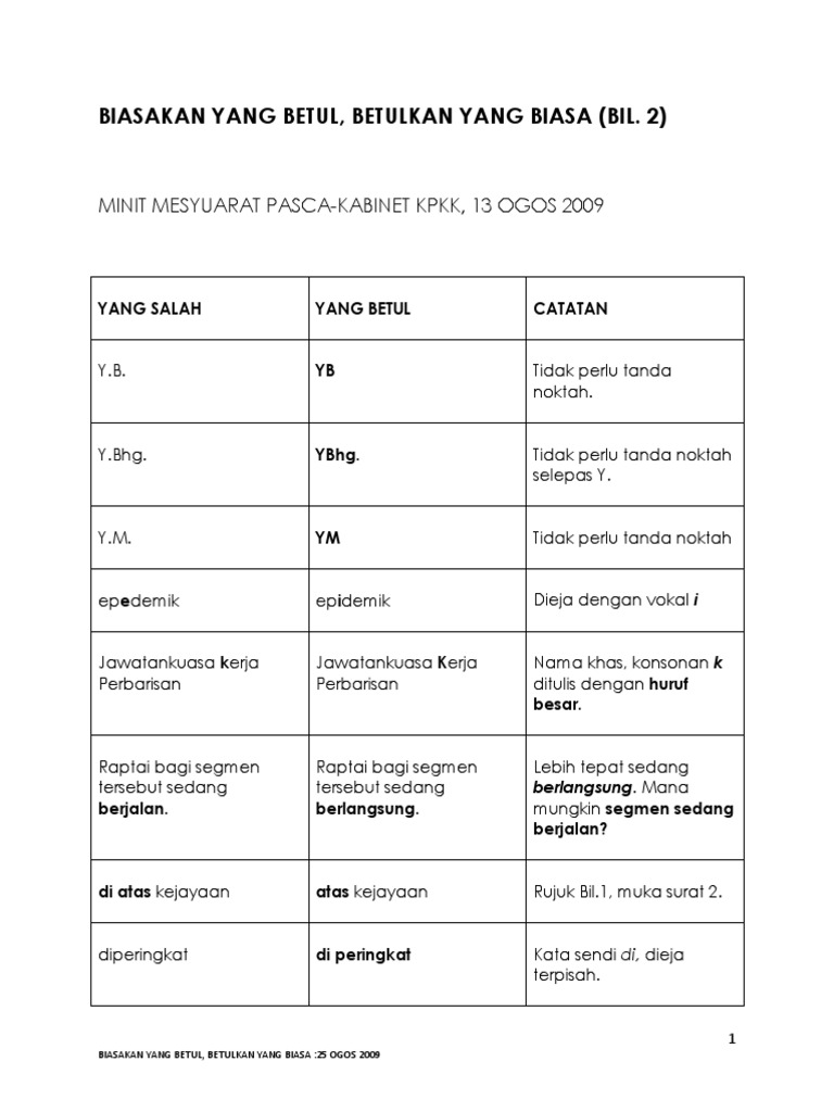 Betulkan Yang Biasa Biasakan Yang Betul Tatabahasa
