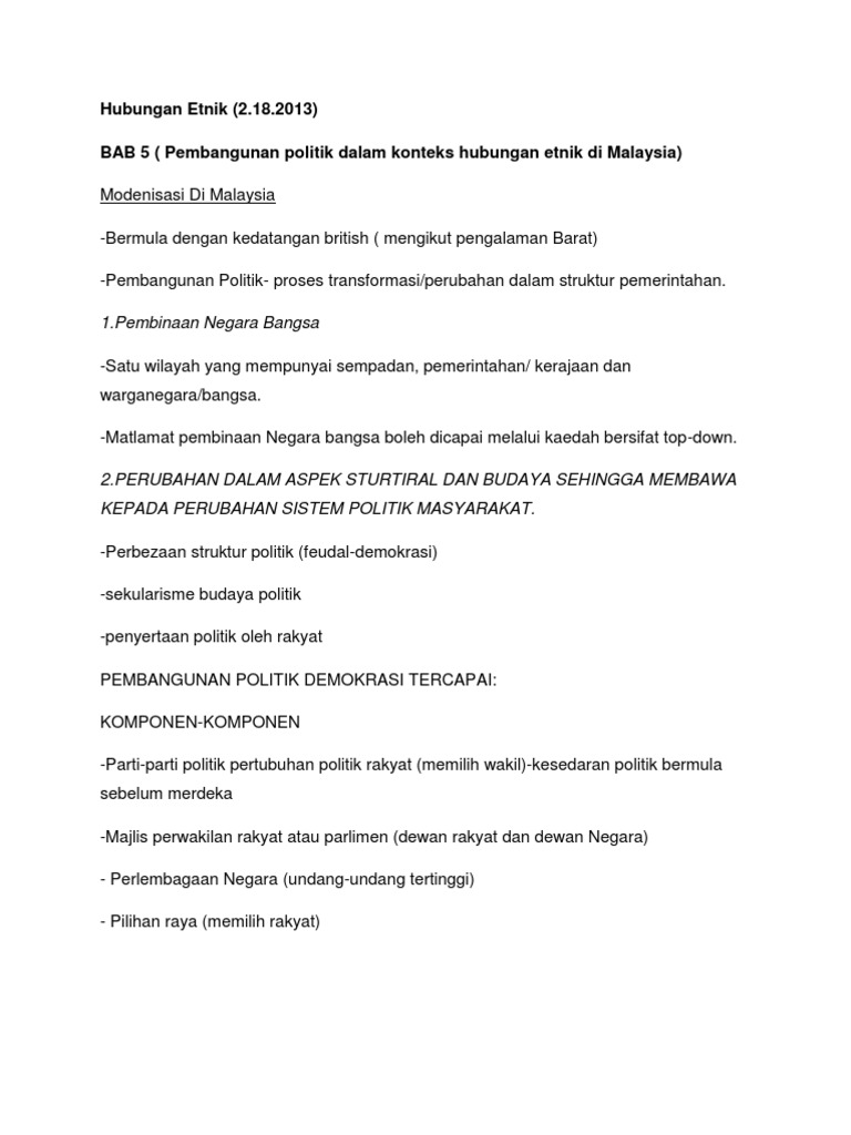 Hubungan Etnik 2 18 2013 Bab 5 Pembangunan Politik Dalam Konteks Hubungan Etnik Di Malaysia