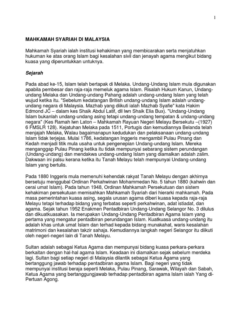 Doc Sejarah Mahkamah Syariah Dan Peranan Jksm Dalam Memartabatkan Mahkamah Syariah Suhaizad Saifuddin Academia Edu