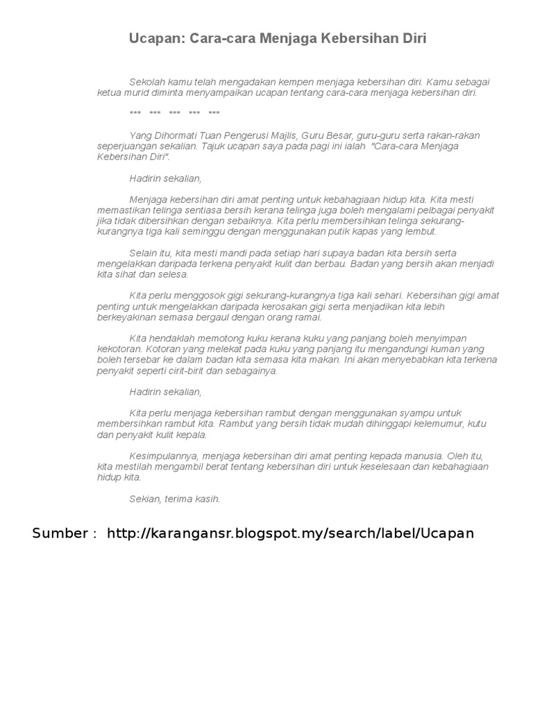 Ucapan Kebersihan Diri