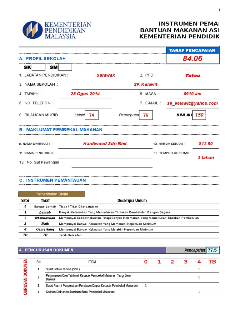 Borang Kaji Selidik Kepuasan Pelanggan Kontrak Perkhidmatan Bekalan Makanan Bermasak