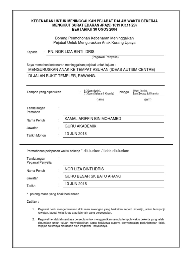Borang Kebenaran Meninggalkan Pejabat Peribadi