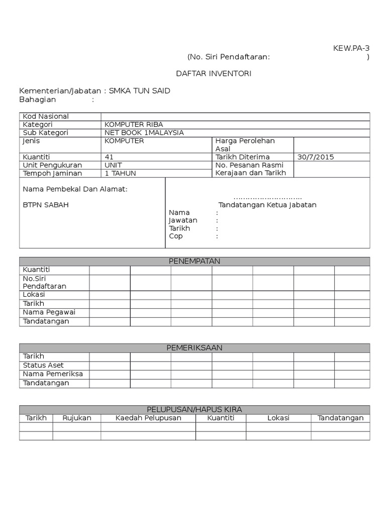 Kew Pa 3 Daftar Aset Alih Yang Bernilai Rendah