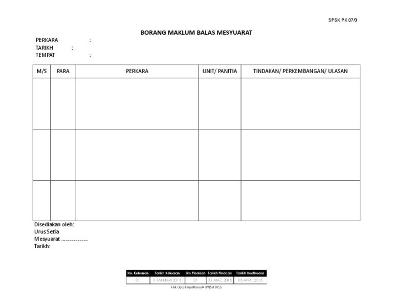 Borang Pk 07 5 Maklum Balas Minit Mesyuarat Kali Pertama 2017