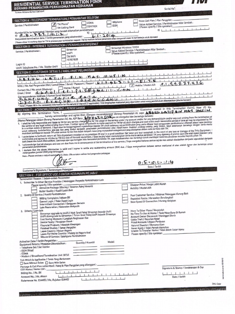 Borang Potong Streamyx Pdf Document