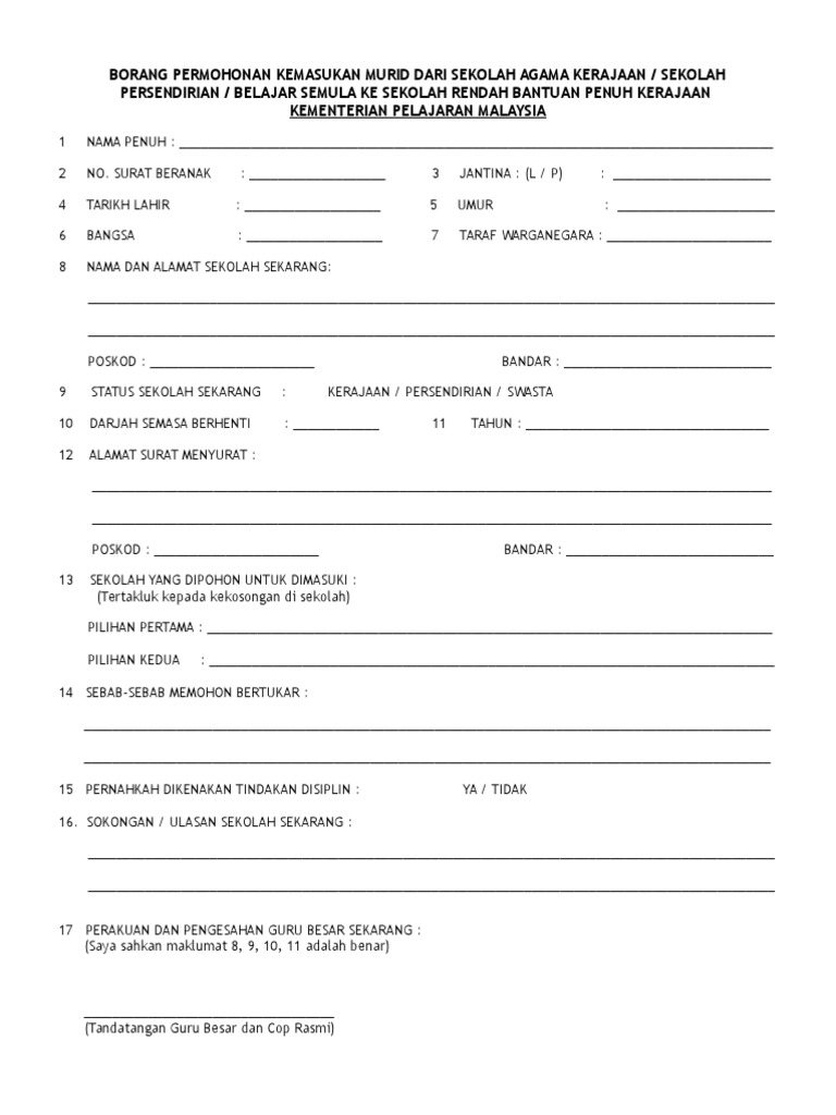 Borang Mohon Belajar Semula