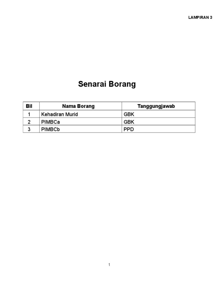 Borang Penarafan Kebersihan Tandas Sekolah Lampiran 1