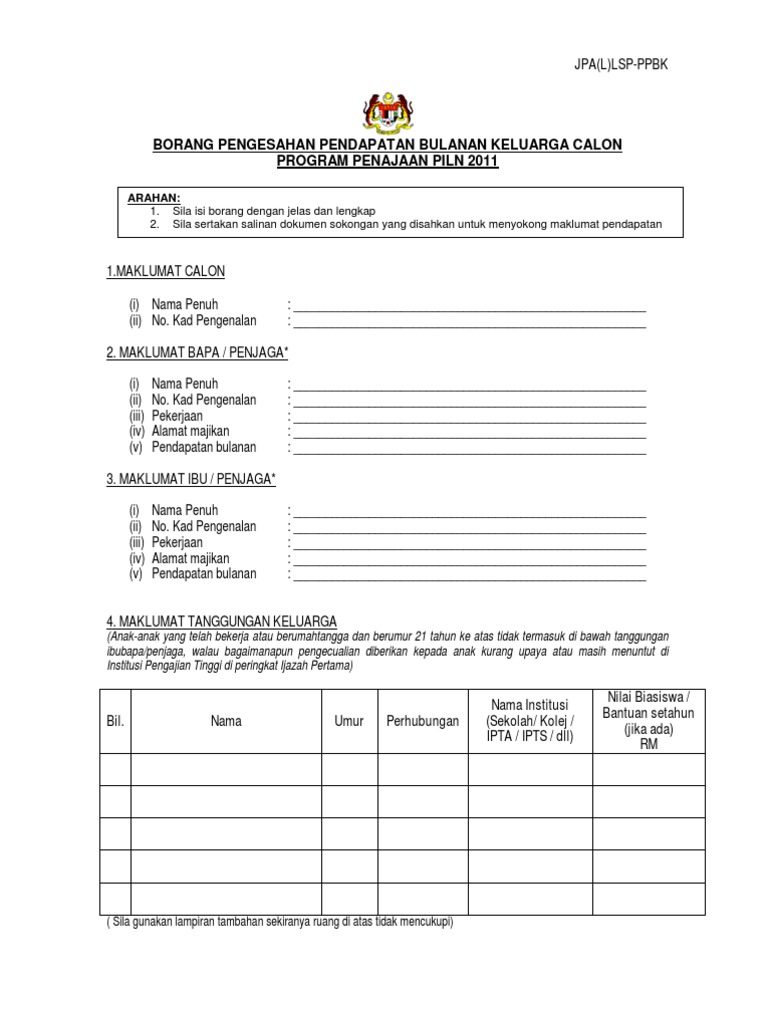 Jpa Borang Pengesahan Pendapatan Bulanan Keluarga 2012 By Wen Xu Issuu