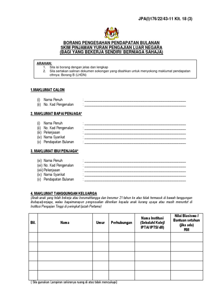 Jpa Borang Pengesahan Pendapatan Bulanan Keluarga 2012