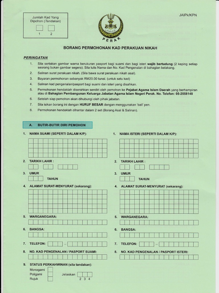 Borang Permohonan Kad Nikah Pintar Mia Liana