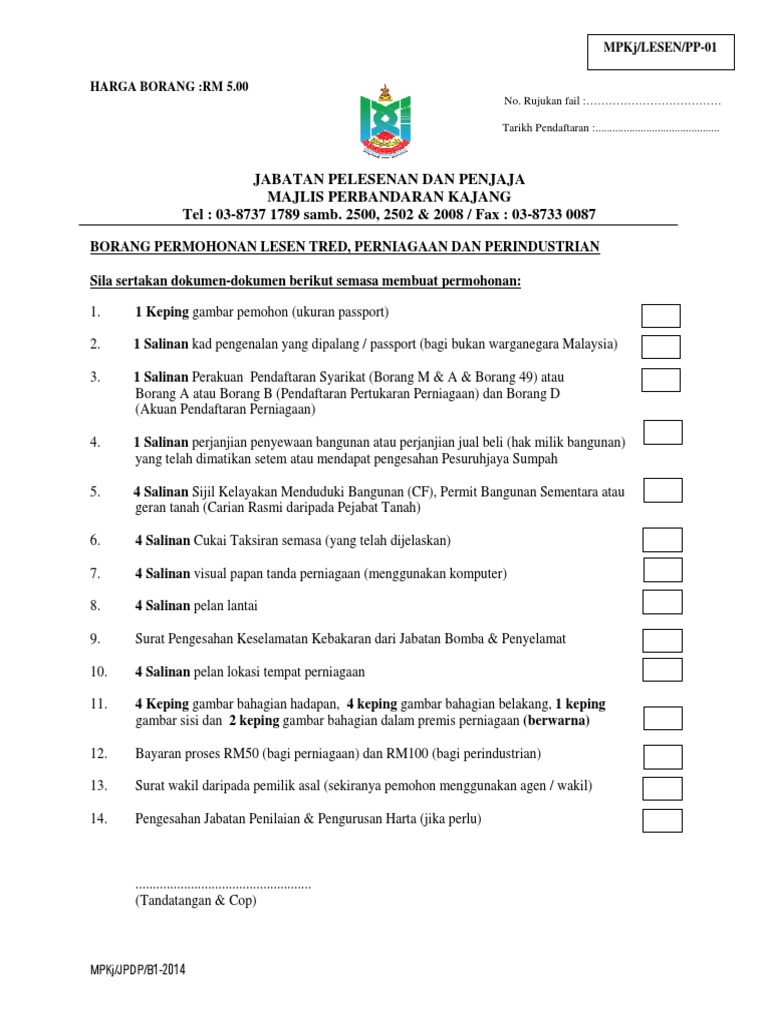 Harga Borang Rm 5 00 Mpkj Lesen Pt 09