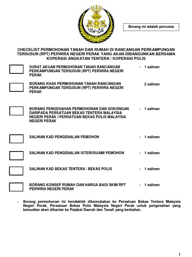 Borang Permohonan Tanah Kerajaan Perak