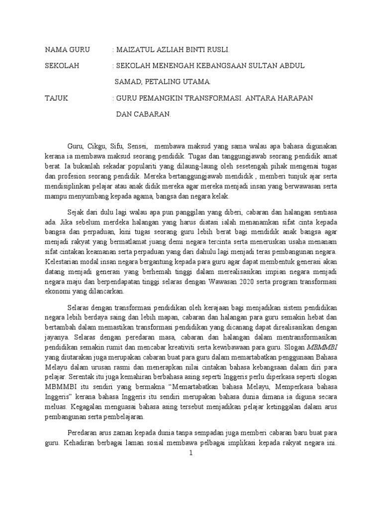 Doc Cabaran Cabaran Yang Dihadapi Oleh Guru Dalam Profesion Dan Langkah Langkah Untuk Mengatasinya Sandy Lo Academia Edu