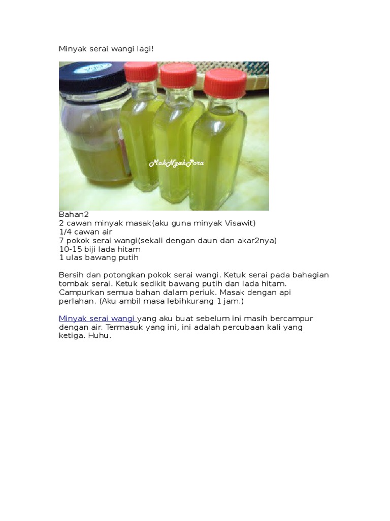 Cara Membuat Minyak Serai Wangi Sentuhan Seni Pengantin Facebook