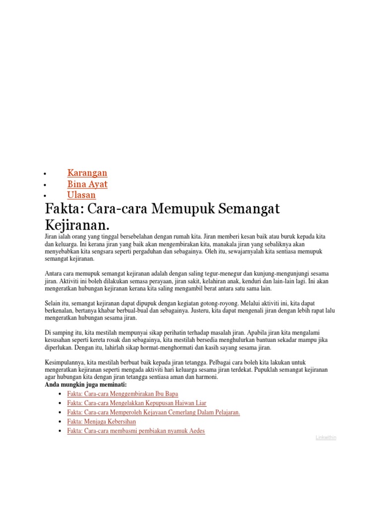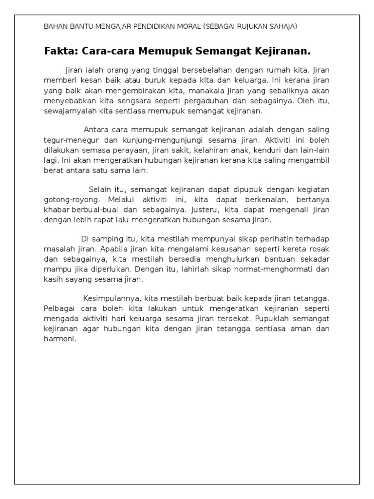 Contoh Contoh Karangan Sekolah Rendah Fakta Cara Cara Memupuk Semangat Kejiranan