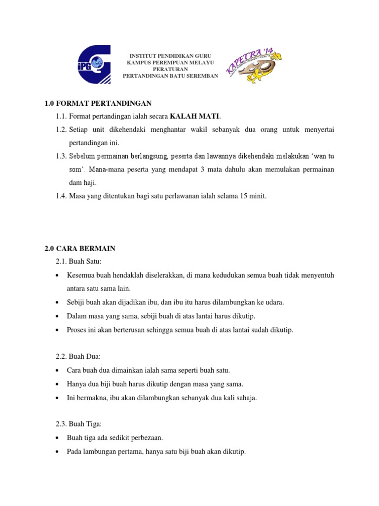 Peraturan Permainan Batu Seremban