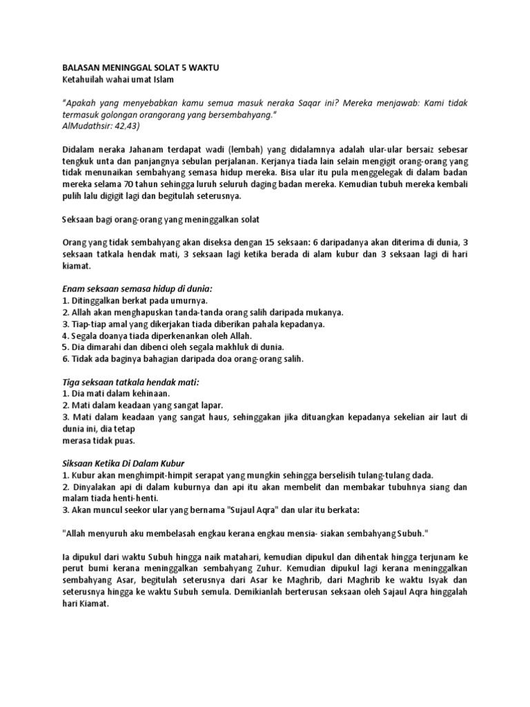 Balasan Meninggal Solat 5 Waktu Docx