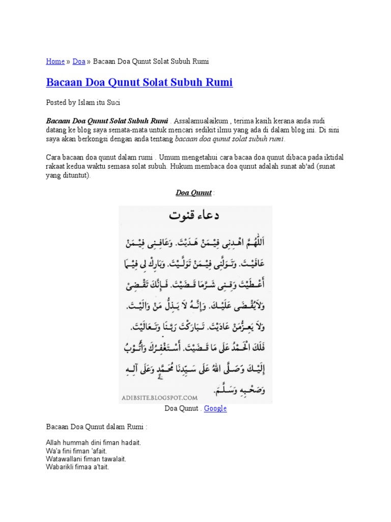 Bacaan Doa Qunut Dan Terjemahannya Rumi Jawi Islamic Inspirational Quotes Doa Quran Quotes