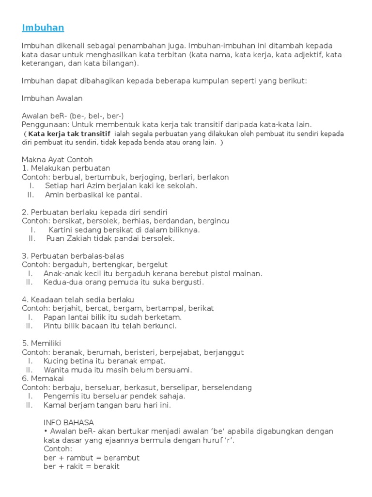 Contoh Imbuhan Sisipan Tahun 5