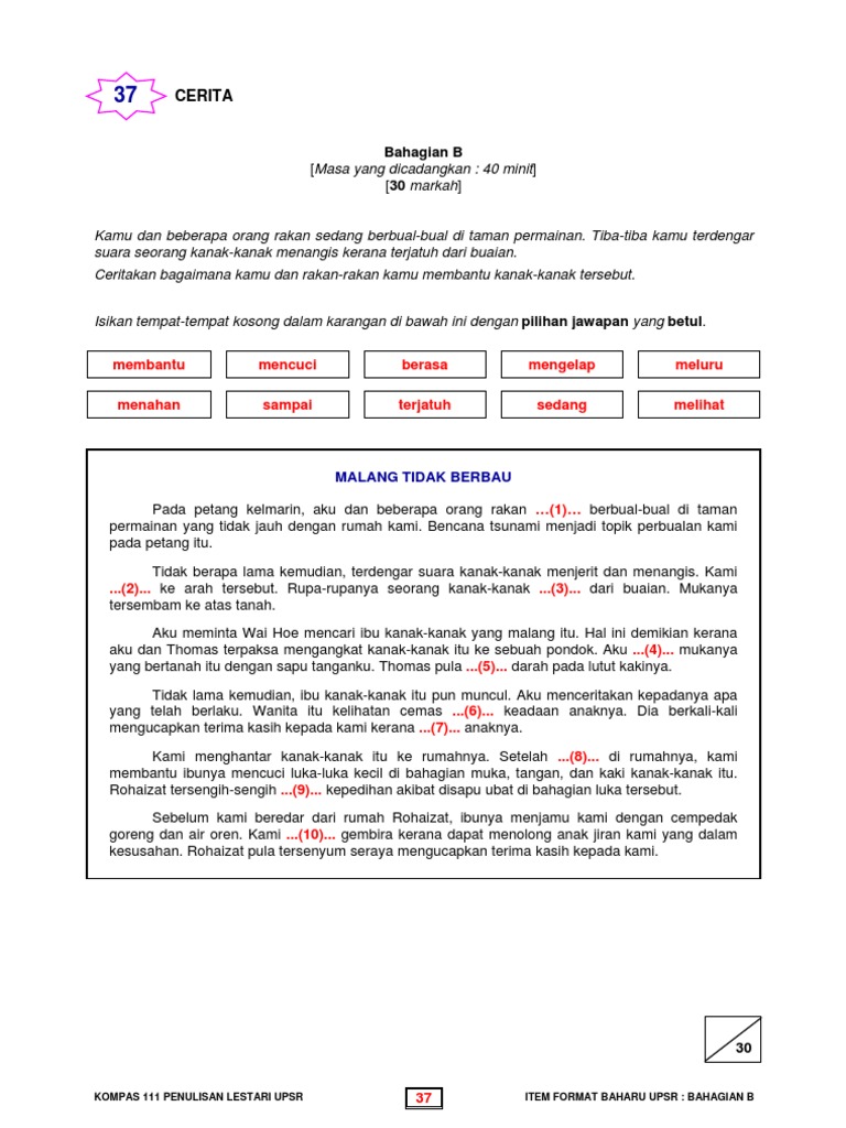 28 Set Latihan Karangan Isi Tempat Kosong Sesuai Untuk Murid Tahap 2 Tahun 4 5 6 Mycikgu Net In 2020 Malay Language Language