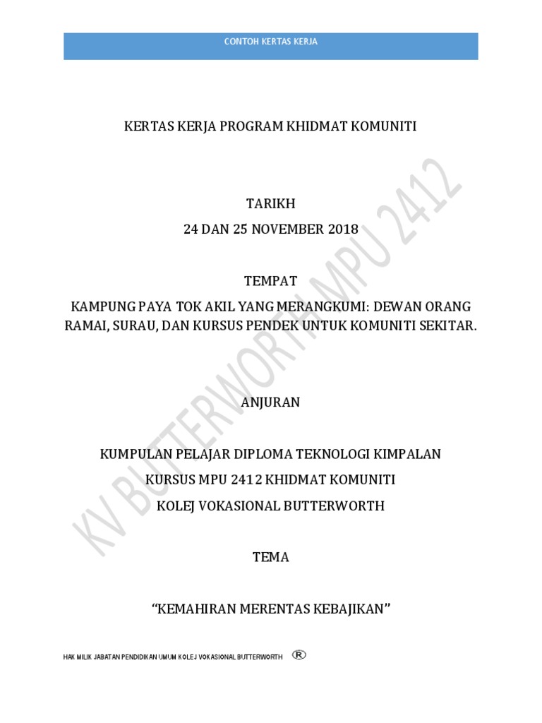 Contoh Kertas Kerja Program Khidmat Komuniti