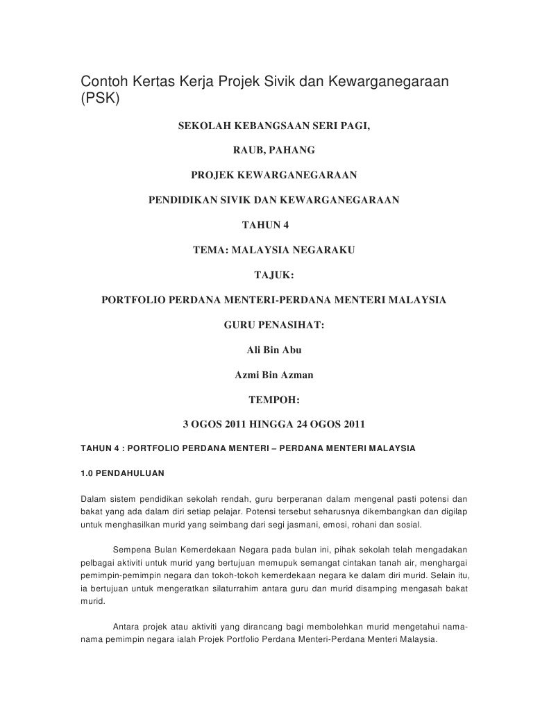 Contoh Kertas Kerja Projek Sivik Dan Kewarganegaraan