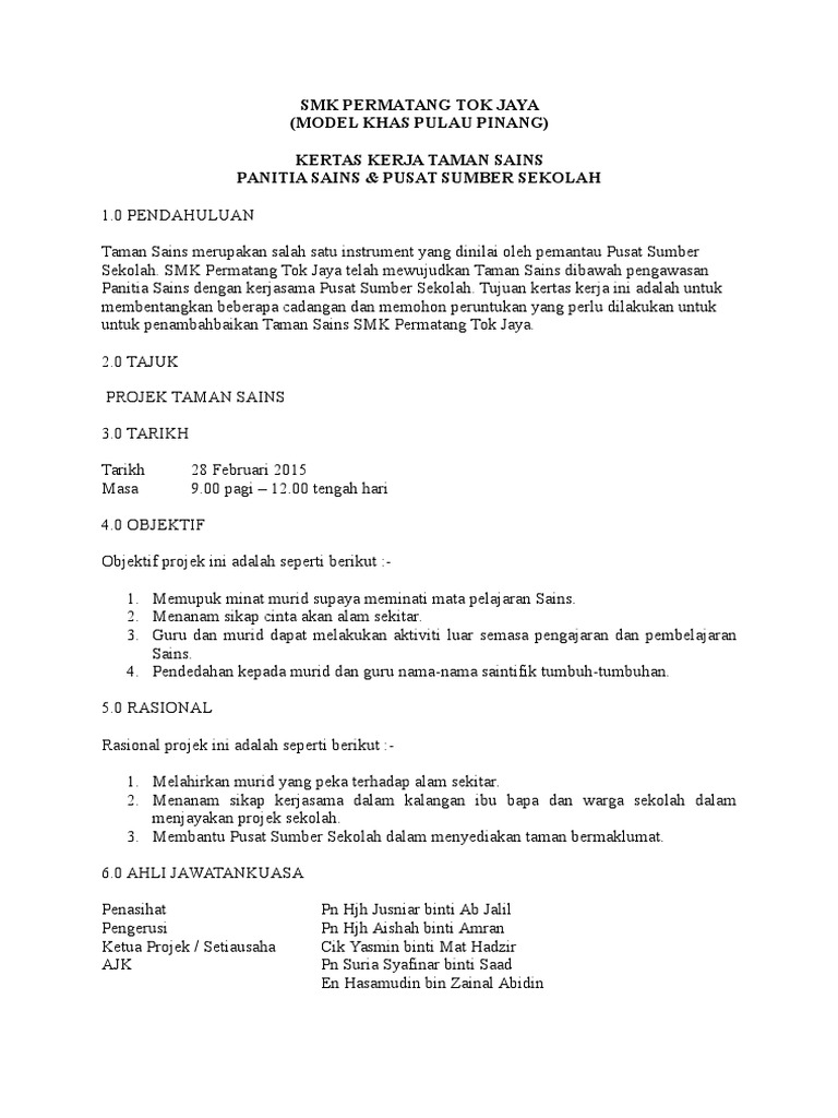 Kertas Kerja Taman Sains