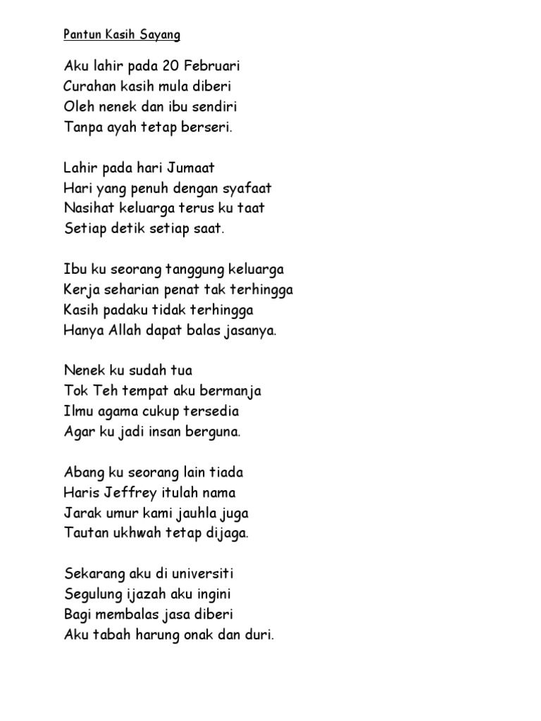 Contoh Sajak Kasih Sayang Ibu Bapa