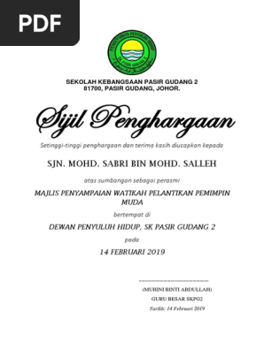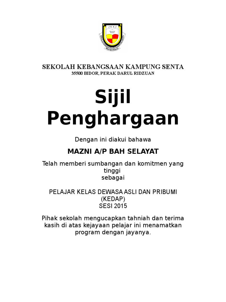 Atas sumbangan petugas pendaftaran. Sma nama sekolah sijil penghargaan. Bukit marak 16030 bachok kelantan. Telah memberikan kerjasama dan sumbangan dengan penuh dedikasi dalam menjalankan tugas sebagai.