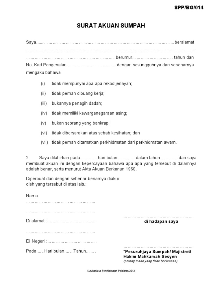 Bg014 Surat Akuan Sumpah