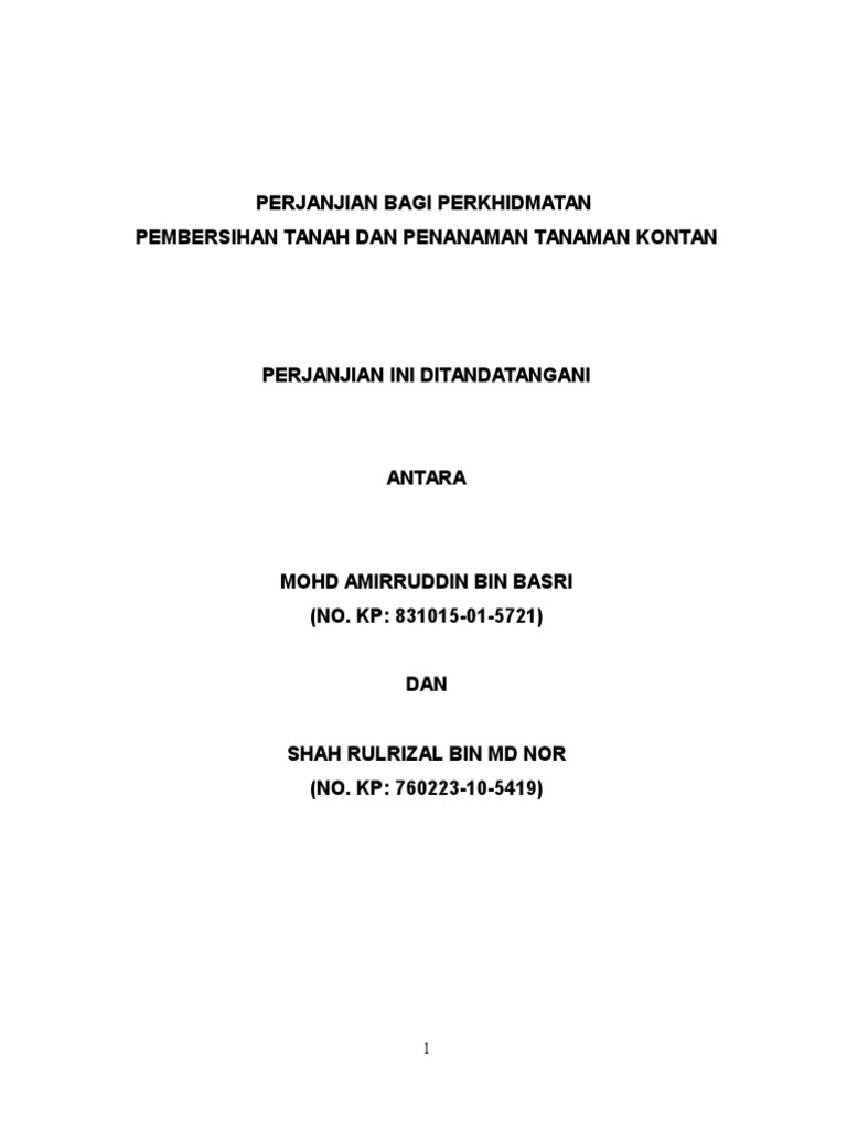 Surat Perjanjian Perlantikan Sebagai Sub Kontraktor Docx