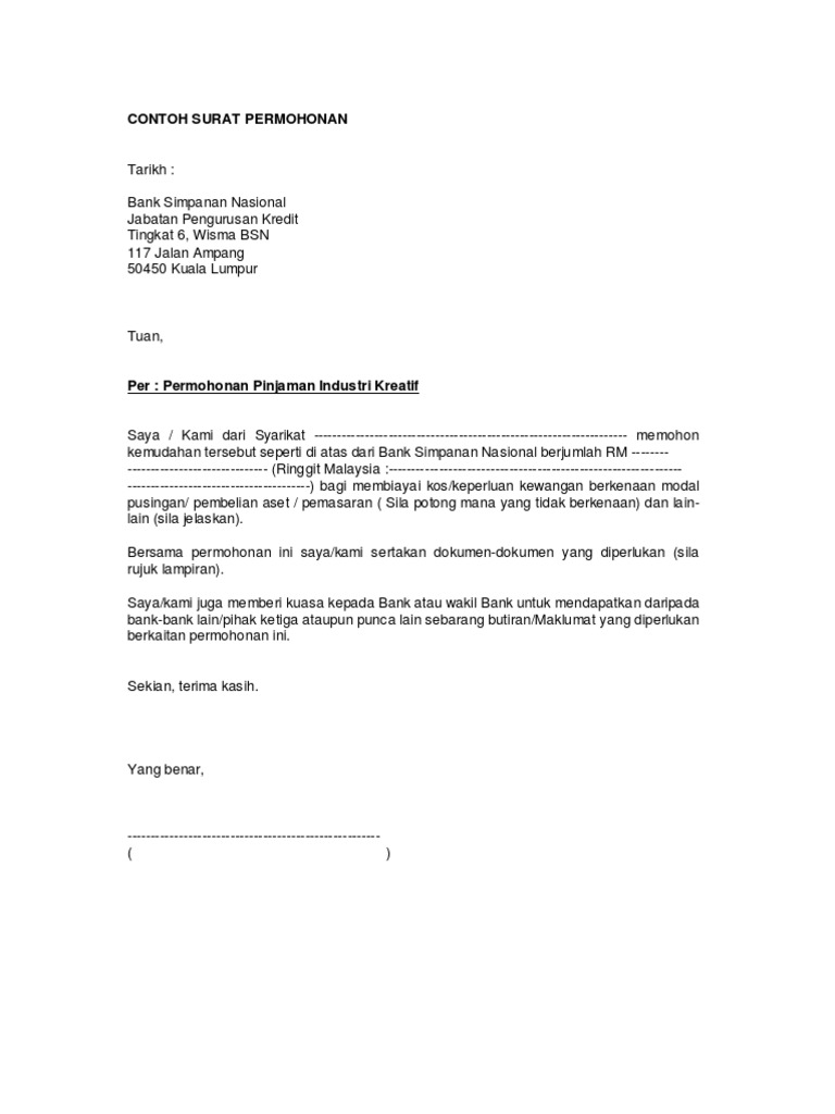 Contoh Surat Permohonan Pinjaman Bank Pdf