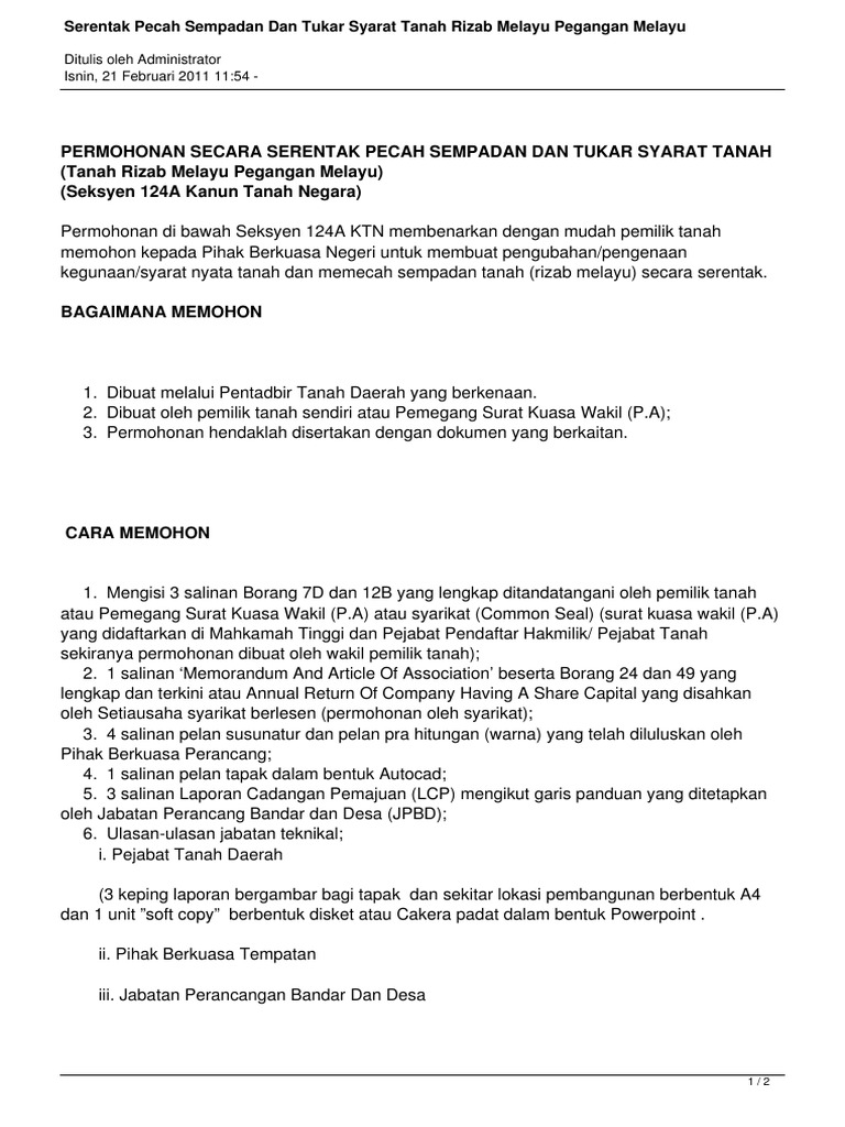 Tukar Syarat Tanah Rizab Melayu Pegangan Melayu